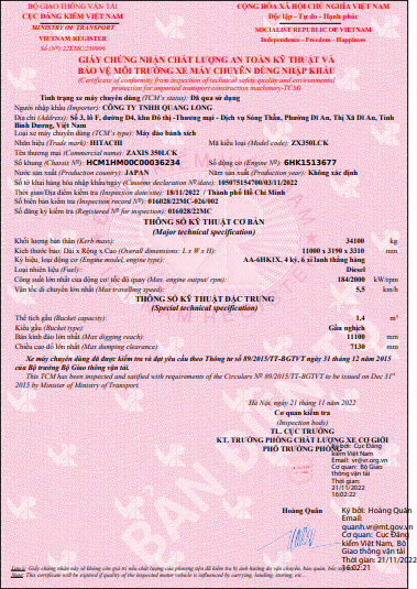 Mã sản phẩm: HCM1HM000000036234 Tình trạng: Còn hàng Thương hiệu: HITACHI- Nhãn hiệu: ZX350LCK
