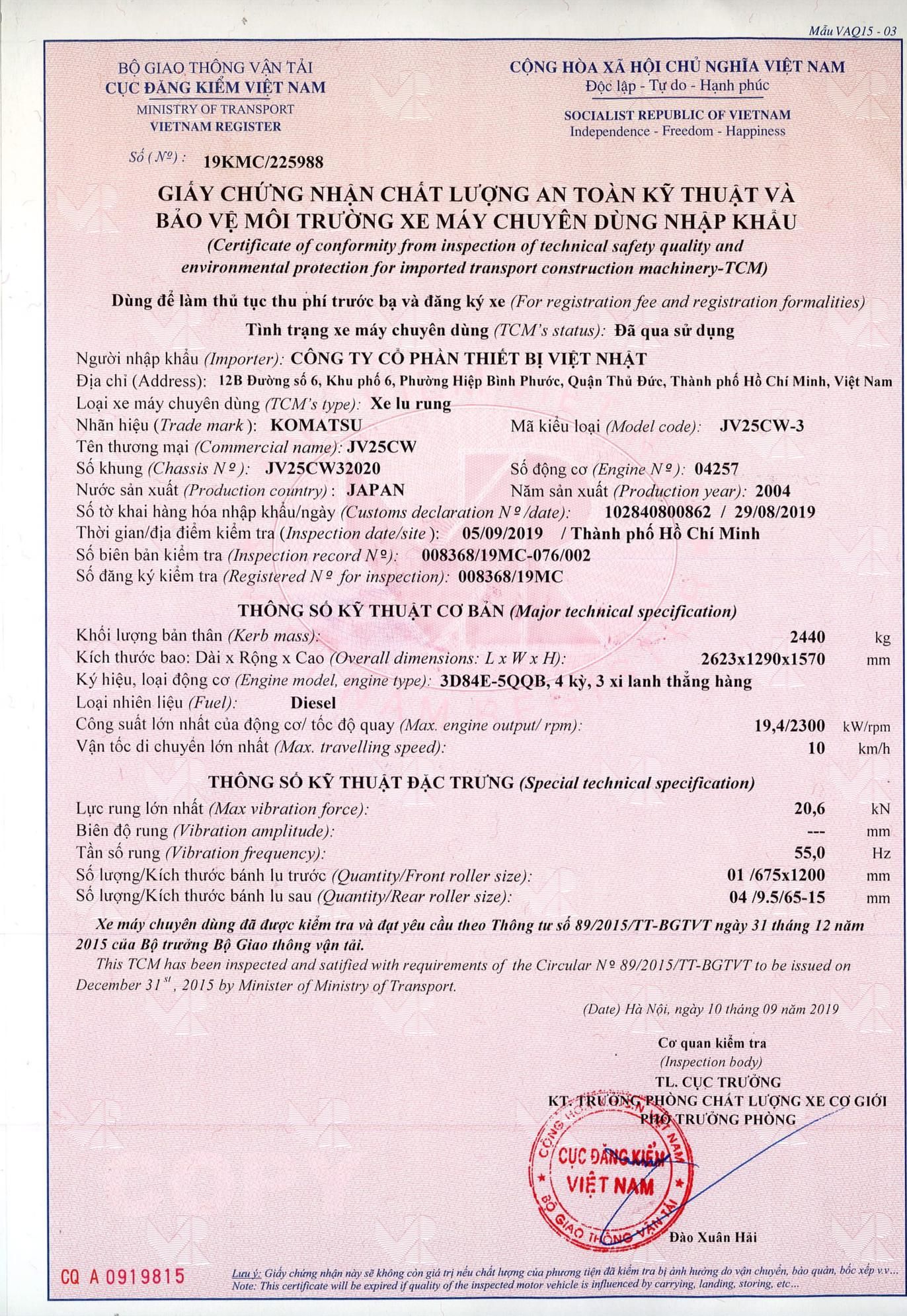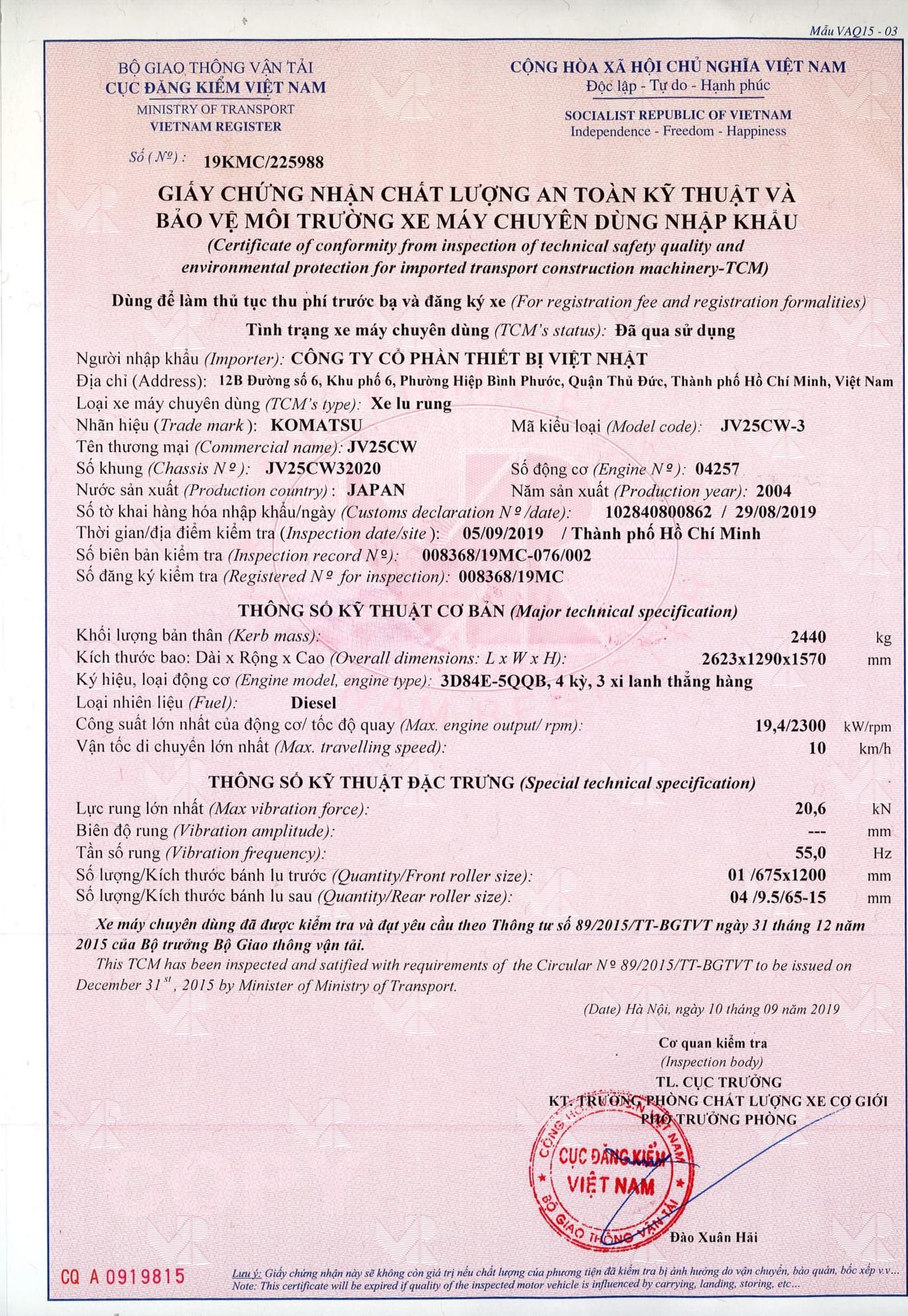 - Số khung: JV25CW3-2020